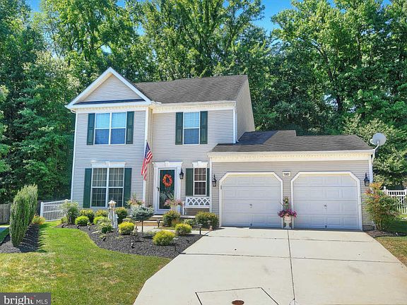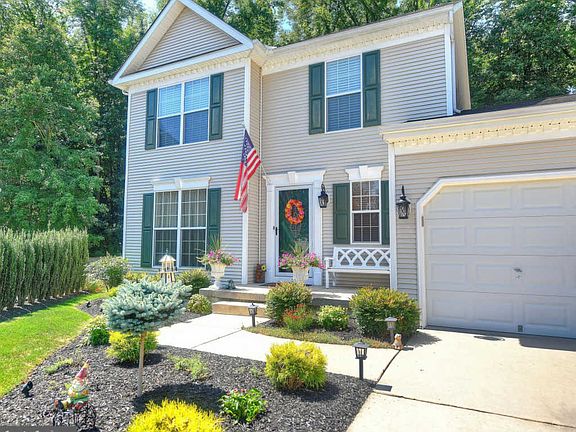 Meticulously maintained, updated and upgraded thru-out. Pristine Colonial Style single home perfectly located at the end of a cul-de-sac. Front porch greets you into the foyer. Paved in Hardwood flooring thru- out the first level. Crown molding throughout the main and upper level! Comfortable living room to the left of entrance, separated by Columns is the dining area. Off to the right is a hallway to a private half bath and the entrance to the Two-Car garage. (Auto Openers and battery backup) Straight ahead is the kitchen, stainless upgraded appliances, large pantry space, granite counters and ample cabinets. Attention to detail as the Seller has capped the ends with wood trim for a beautiful finish. Table space between kitchen and living room with sliders to view your gorgeous yard and patio backing to privacy and woods. Family Room also has large window allowing natural light for daytime and a gorgeous custom gas fireplace trimmed in marble and framed in wood detailing. Mantel has extra outlets, perfect for decorating thru-out the year and TV can be mounted here as well. Carpeted stairway leading to the second level. Landing has a wide wood floored shelf which also has an electrical outlet for additional lighting or decorating. Master bedroom to the right with large walk-in closet, ceiling fan, double window overlooking gorgeous back yard. Large Master bath with soaking tub, tall double bowl sink and separate shower. Two other very nice size bedrooms (one is currently used as an office) and another full bath in the hall. Upper Level Washer and Dryer adds ease to the Laundry duty and has plenty of room for storing those supplies. Basement is wide open and there is flex space if a fourth bedroom is ever needed. Full bath in the lower level, ample storage in utility room and huge open area for additional Family room, work-out space, etc. You can tell from the moment you walk in this home that it has been lovingly maintained. The front and rear yards are all well thought out for year-round enjoyment. Enjoy the beautiful gardens day or night with LED landscape lights found throughout, even at the mailbox lighthouses (included with the sale of the home)! Cooking out and entertaining is easy as pie with the natural gas hook-up for gas grill found at exterior of home.The shed, the patio, fencing all add to the backyard Oasis for your future enjoyment. So, don't miss this gorgeous home on this perfect lot, you will not be disappointed! ADP system installed and can be activated.*Price Reflect Needs for Updating*a