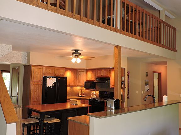 This Is A Remarkable Property Offering A Large 5 Bedroom And 3 Bath Home With A Nice Building With All The Bells And Whistles That You Could Ever Think Of Or Want. This Home Has An Open Floor Plan So When Your In The Kitchen, You Can Visit With Everyone In The Dining Area And Even The Living Room. Custom Cabinets In The Kitchen, Granite Countertops, Beautiful Appliances Included, Serving Area With Electrical Outlets From One End To The Other. The Dining Area Has Large Windows For Natural Light And A Vaulted Ceiling. Large Open Living Room With Beautiful Large Windows For Natural Lighting, Plus Sliders To A Private Deck With Hot Tub Or Out From Dining Area To A Deck For Outdoor Entertaining And Grilling. There Is A Large Bedroom With Double Closets, Full Bath And Main Floor Laundry. Plus 3 Additional Bedrooms, 3/4 Bath, And A Loft With Custom Cabinetry. Now Onto The Large Master Bedroom, Your Own Private Deck, Beautiful Brick Gas Fireplace, Big Walk In Closet For Her And Another Large Closet For Him. The Master Bath Has Double Sink Vanity, Large Tiled Shower With Double Shower Heads. There Are Solid Oak 4 Panel Doors Throughout And Heated Floors, Wall Tvs In Bathroom And Bedroom Even Included, Plus The Vaulted Ceiling To Add To A Beautiful Master Bedroom. The Master Also Has Its Own Furnace And Central Air. There Is A Loft Above Kitchen That Makes A Perfect Office Or Whatever You Desire. The Basement Is Unfinished For Additional Storage. There Is A Large Attached Garage, A Wonderful Private Yard With Trees Lining This Almost 3/4 Acre Lot. There Is A Large Building With 12 X 10 Insulated Garage Doors X 2. This Building To Say The Least Is Built With 8" Sidewalls, Full Netted And Blown In Insulation And Then Interior Finished With All Osb. Floor Drain In The Center, Storage Shelves , Furnace, Storage Loft, Wonderful Lighting , Bathroom And Surround Sound Both Inside And Out. Enjoy Music Whether Your On The Deck, Under The Nice Porch Area With Ceiling Fans Or Sitting Around The Fire . This Home Has Updates And Everything You Might Say Is New. Just To Name A Few Dates Mudroom And Attached Garage In 2005, 2011 Master Bedroom And Bath, 2012 Shop Building. Must See