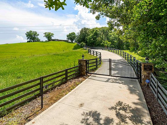 Just 20 minutes from downtown Knoxville, you'll find a 200-acre gentleman's farm offering a variety of landscapes for privacy and recreational activities, all with Greenbelt status. This turnkey estate features a ranch-style home, a swimming pool, an 11-acre lake with a pavilion, ponds, pastures, woods, and outbuildings. The renovated 5500 ft² home sits atop a hill past a gated entry and concrete drive, boasting mountain views. Inside, hardwood floors flow throughout the open living area designed for entertaining. The spacious kitchen with granite countertops and stainless appliances opens to a great room with a stone fireplace. A screened porch overlooks the pool and Mount LeConte. The primary suite features a walk-in shower and dual sinks. The lower level offers a wet bar and entertainment space. Outside, enjoy the fully stocked lake, gated pastures with horse rail fencing, automatic water tanks, and various structures including chicken coops, carports, a shop, and sheds. With 110 acres of mature hardwoods, the property is ideal for outdoor enthusiasts, offering ATV, horseback, and hiking trails, fishing ponds, and hunting opportunities. It's also perfect for events or as a private retreat.