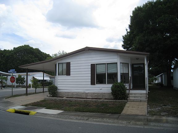 Corner lot double-wide (26'x55') mobile home, built 1988, available for purchase. This home is located at Paradise Island, a beautifully maintained, 55+ community with many amenities including a large clubhouse with billiards room, shuffle board courts and an Olympic-size swimming pool. The home is in a pet friendly area and comes with a share in the community (valued at $55,000). Home has an open concept living/dining room and a large eat-in kitchen. The oversized master bedroom has a walk-in closet and a large bathroom with double sinks, a garden tub and separate walk-in shower. Second bedroom/den/office has a closet. Second bathroom has a tub. Ceiling fans throughout. Laundry area is inside and leads out to the enclosed lanai. A storage shed is located inside the lanai. Monthly maintenance includes lawn mowing, water, sewer, garbage and use of all amenities. If interested, please review the photos and check out the park located at 1001 Starkey Road (between East Bay & Ulmerton). Buyer responsible for own financing. Sold "As Is". For more information, or to see inside, please call/text. Eva: 580-9176 or Janis: 422-5763