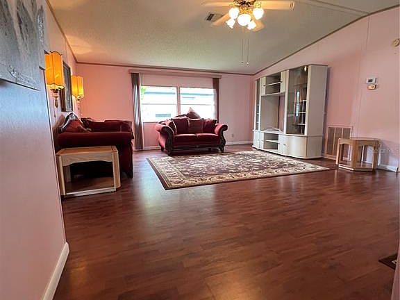 Enjoy this active 55+ community Nestled in a serene setting with awesome pond views. This spacious 1,509 Sq ft manufactured home offers a perfect blend of comfort and natural beauty. The home features an open-concept living space with large windows that invite abundant natural light. Stunning water views whiling your enjoying breakfast, lunch and dinner. This home has 3 generously sized bedrooms and 2 full bathrooms, there's plenty of space for relaxation and convenience. The kitchen comes fully equipped with ample cabinetry. The living room offers a cozy atmosphere, ideal for unwinding after a long day. Step into your Florida room and enjoy peaceful evenings while taking in the tranquil pond view. The property offers ample outdoor space, ideal for enjoying nature or outdoor activities. Additional features include central air conditioning, 3 window a/c units for more of a colder feel in your own home, a laundry room, outside storage and a covered carport. Located in a quiet community, this home provides a retreat from the hustle and bustle while still being within easy reach of shopping, dining, and other local amenities. Available for rent now. Schedule a viewing and experience the charm of this pond side home!