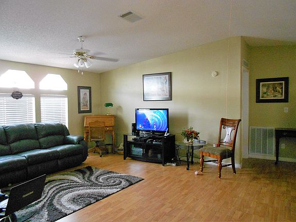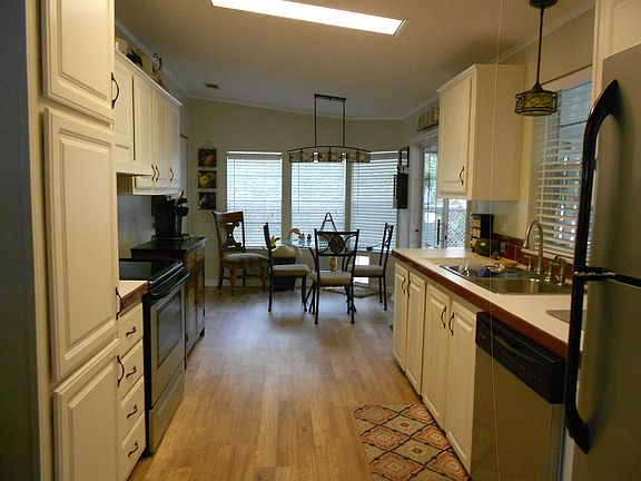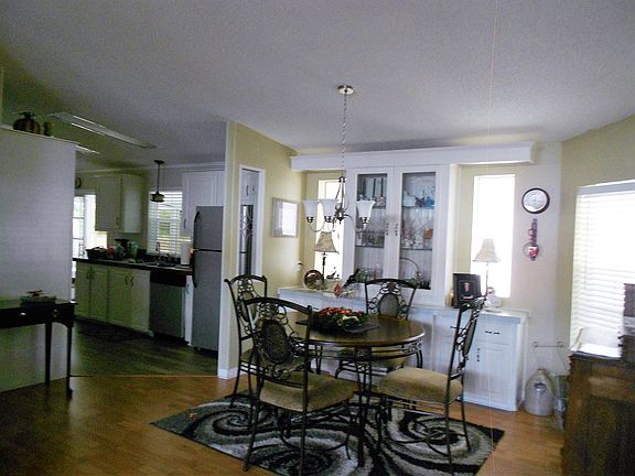 You will be greeted by this ELEGANT front entrance with lovely tile flooring and custom dog door. WARM and INVITING eat in kitchen/dining with all STAINLESS STEEL APPLIANCES. Lots of counter and cabinet space. SUN FILLED living room/ dining room with 3 bowlike windows for lots of natural sunlight. Newer laminate flooring HIGH CATHEDRAL CEILINGS and CUSTOM CROWN MOLDING making it feel spacious, warm and inviting. Lovely built-in hutch with custom stain glass windows. TANKLESS WATER HEATER!! Large Master en suite bedroom with end to end wall closets with an adjoining Master bath with a refreshing WALK IN GARDEN TUB!! Guest bedroom also has large end to end closets with adjoining bath for your privacy. Third bedroom could be used for an office, bonus room, workout room or your choice!! SIT BACK AND RELAX in this PEACEFUL screened in Florida room. Well maintained A/C heat. Large 3 vehicle driveway with attached carport and a Florida room. Quiet, peaceful secluded back yard with a surrounding irrigation system. PET FRIENDLY. COME AND VIEW THIS METICULOUSLY CLEAN AND CRISP HOME IN UPSCALE PARADISE ISLAND COMMUNITY!! A 55+ CO-OP with a low lot rent of 715/ month which covers, lawn, trash, sewer, water, WI-FI AND CABLE!! This active community has a clubhouse, pool, spa, church and the most meticulous grounds in all of sunny FLORIDA!!! 5 STAR PARADISE ISLAND!!!
