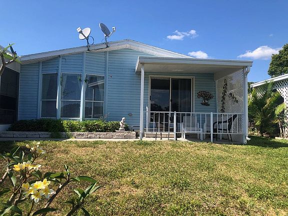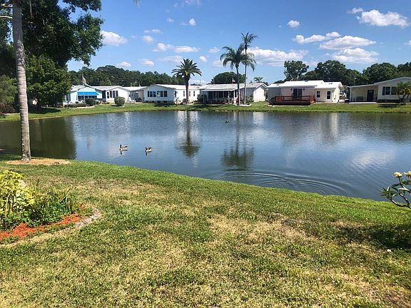 Your search can finally be over if you are looking for a home with captivating water views. This beauty has so much to offer from it's charming interior to the delightful exterior sitting areas! INTERIOR: Light, bright and move-in ready is a good description of this 2 bedroom, 2 bath home. Tastefully furnished and decorated is how this home will convey. The galley kitchen has no lack of cabinet and storage space. A breakfast bar allows for quick meals or a snack. All necessary appliances are included. Extra space is located in the large pantry and a convenient inside washer and dryer makes up the kitchen area. For a more formal dinner the dining room is the perfect location. A bay window gives you pleasant views from this space. A sliding glass door is just off of the dining and takes you to the Florida room. Impressive room for relaxing or even an office space. Again you have those wonderful water views from this room as well. Back inside the open and spacious living room also has a slider with even more water views and opens to the back patio. The guest bedroom is ample sized and has a walk-in closet. Across the hall is the guest bath which has a shower and tub combination. Plenty of storage space is also a plus. The master suite is in the front of the home and has more than enough space for a king sized bed. A walk-in closet and en suite bath adorn this area. The master bath has a walk-in shower to enjoy. Appealing paint choices flow throughout with ceiling fans and light carpeting improving the home. EXTERIOR: WOW...great location with waterviews from many different areas. Lush landscaping, back patio with views of the pond and wildlife, vinyl siding, shingle roof, storage shed, central heat and air, two car carport (will be freshly painted) and an extra large lot! So many exceptional features...all for the modest asking price of $79,900! Decide quickly as homes on the pond do not last long! COMMUNITY: Paradise Island is an active 55+ community with lots of activities to choose from. Gorgeous clubhouse, pool and spa, shuffleboard and more. All of the homes are doublewides in this park. This specific home is located in a pet section. Two pets allowed with a maximum weight of 40 pounds. The reasonable lot rent of $731.01 covers your water, sewer, lawn, garbage, cable and internet. Call today for a private showing as homes are selling quickly!