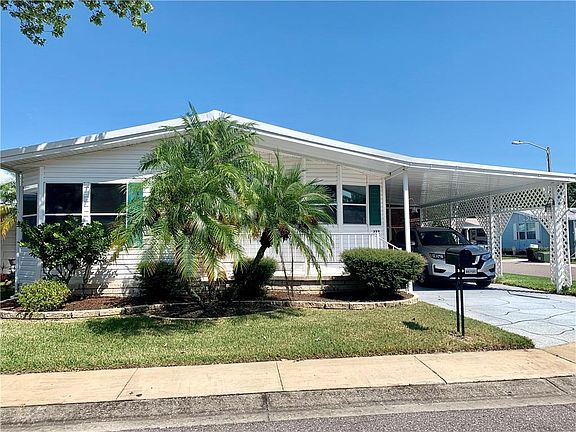 BACK ON THE MARKET DUE TO BUYER NOT QUALIFYING. FABULOUS HOME BUILT IN 1994. 2 BEDROOM 2 BATHROOMS AND A GREAT FLORIDA ROOM THAT IS UNDER CARPORT AND RAISED TO THE HEIGHT OF THE HOME. CORNER LOT AND IN PET SECTION OF THE COMMUNITY. 2 SMALL PETS UP TO 40 LBS. SKYLIGHTS IN KITCHEN AND LAUNDRY ROOM. OPEN FLOOR PLAN. THIS HOME HAS A NEW COMFORT COVER ROOF PUT ON JANUARY 2019 AND 15 YEAR WARRANTY IS TRANSFERABLE TO NEW OWNER. 2015 DRIVEWAY REFINISHED AND HAS 10 YEAR WARRANTY, TIEDOWNS REPLACED IN 2001. NEW A/C IN 10/2013. FLORIDA ROOM A/C REPLACED IN 2017. THIS 55+ COMMUNITY HAS SO MANY ACTIVITIES TO CHOOSE FROM INCLUDING SHUFFLE BOARD, BINGO, CARDS AND MUCH MORE. HOME IS READY FOR IMMEDIATE OCCUPANCY. COME LOOK BEFORE ITS GONE! LIST PRICE OF HOME INCLUDES THE SHARE IN THE COMMUNITY.
