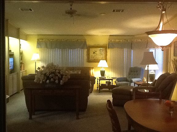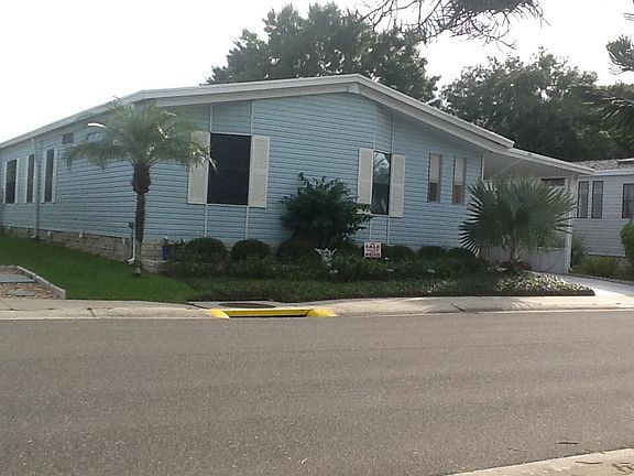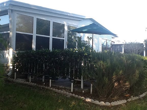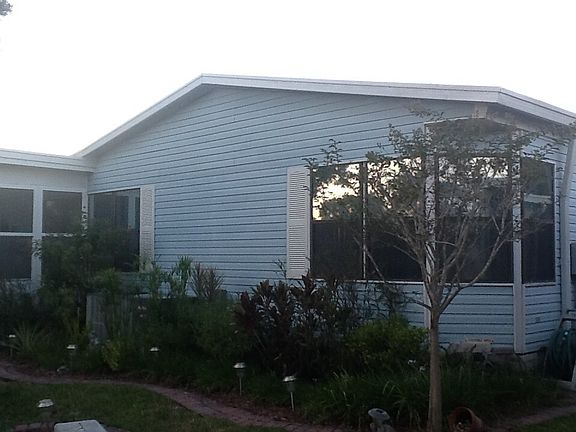 An absolutely beautiful WATERFRONT home in a meticulously maintained 55+ community. Located on the 2nd largest lake in the community, you will fall in love with this 1991 Jacobson beauty! The home has an open floor plan with the kitchen, dining room and living room flowing off each other to form a massive great room of 564 square feet (with built in bookcases in the living room area)! Every part of the great room has panoramic views of the water. The kitchen island, which faces into the great room, contains a Jenn-Aire four burner stove top with grill and griddle attachments. You can cook and stay involved with your family and guests. Oversized skylight in kitchen brings in daylight and saves on electricity. The kitchen also features a side-by-side refrigerator with filtered water and ice (crushed or cubed) in the door. The Master Bedroom measures 15X16 with his and hers closets and a vaulted ceiling with fan. The Master Bath is 8X14 with his and hers sinks. There is also a shower with a separate garden tub. The Guest Bedroom measures 11X12. There is wall-to-wall carpeting throughout the house with vinyl flooring in the kitchen, baths and laundry room. The interior walls have been beautifully textured and color coordinated. The inside laundry room is 6X9 and the washer and dryer are included. For additional leisure area, you will really enjoy the 11X19 Florida Room! Eight (8) updated double pane windows provide expansive views of the entire lake. Open the windows and enjoy the breeze or close them when the weather turns nasty. You will even enjoy the bad weather in this room! Beautiful Anderson storm/screen combination doors were added on all external doors. These doors have a button that can be pressed with your foot to hold the door open. To release the door, simply open the door further and release it. They are beautiful, practical and secure. All windows have either vertical blinds or horizontal faux wood blinds. The home has new ceiling light fixtures throughout. For outside enjoyment, the PATIO AREA is one of the nicest around! It is 11X13 with outdoor tile and is surrounded by white bannister fencing and a gorgeous jasmine hedge. Intimate and private, yet open enough to capture the breathtaking morning and evening views! This is one area of your home you will use often! A large grassy area for a blanket and a snooze, or for a picnic with the grandkids! Lush landscaping abounds and solar powered lights provide evening accents. There is a new 30 gallon hot water heater that was added two years ago. The central air conditioning unit is only 7 years old. A 25 year life metal roof-over was added 10 years ago. The owner is including all the appliances, window treatments and curtains in the $91,000 price. Where else can you find a move-in ready waterfront home for this price? Owner will include everything else you see in the house, other than a few personal items (list to be provided upon request), for a sales price of $95,000. Imagine moving in and being able relax in your new home on the first day! Luxurious WATERFRONT homes like this don’t come along very often. Don’t miss out! Put this one on your MUST SEE list today!