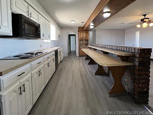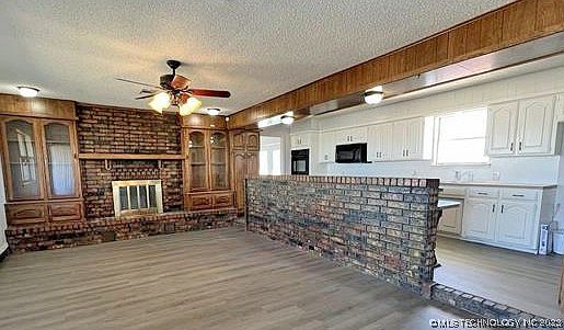 - Brick Counters, Laminate Counters, Ceiling Fan(s)