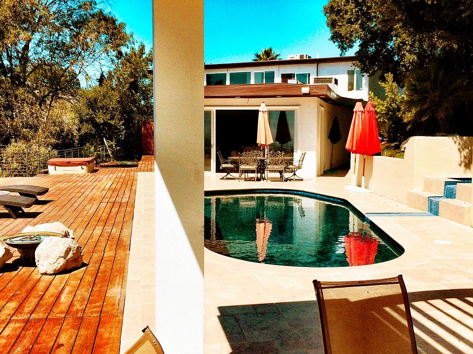 Welcome home to a resort like living in prestigious lower Bel Air. Wake up to an ocean view, enjoy the serenity of a beautiful canyon and feel safe in a completely fenced in and private backyard. This home is perfect for celebrities, high end executives or families who want to feel safe and live in style. Stradella Road is one of the hottest and most star studded streets in Bel Air. This home offers 4 bedrooms, 4 baths, a large gourmet chef's kitchen with an island, granite counters, two ovens, six burners, two sinks, top-of-the-line stainless steel appliances, extensive cabinetry for storage and a pantry/laundry room just steps away. The kitchen, dining, oversized living and entertainment area with an impressive 82" SONY TV are flowing perfectly in an light and open concept. The floor to ceiling windows and sliding glass doors provide an indoor/outdoor feeling and invite you to a dip in the pool anytime. Time for a BBQ while watching stunning sunsets? The easy to use, built-in outdoor kitchen with a fridge and top of the line gas grill, makes every evening unforgettable. The large master suite is located upstairs and has its own balcony with stunning city views all the way to down town Los Angeles. The cozy couch area makes this room very tranquil and sexy. The oversized master closet can easily be used as a nursery or an office. Great views Great Privacy Great Location Great open concept Very Impressive Available now. Available for short-term and long term rental. Renter pays utilities.