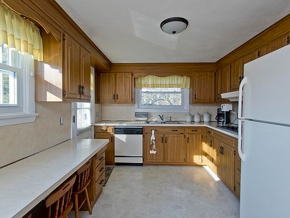 WELCOME HOME to this beautiful dormered cape ready for it's new lucky owners! This lovingly cared for 4 bedroom, 3 full bathroom home sits on 1 acre of land. The kitchen has a built-in double oven & breakfast bar. Large family room/dining area has a wood burning fire place, & freshly cleaned carpets. The beautiful living room has a bow window & HW underneath carpet. 2 bedrooms on the first floor with gleaming hardwood floors! The VERY spacious bedrooms on the second floor have HW floors, built in dressers/desks, & each have 2 double closets w/ TONS of storage space! Cedar closet in 2nd floor hall. The finished basement has a full bath/laundry room, brick wood burning fire place, & walk out to the back yard covered patio. Basement has access to 2 car garage. The functional barn w/ loft & 2 green houses completes this package. New replacement windows throughout (2018). 3 heating zones! Solar-assisted hot water. Home is much larger than it appears. Schedule your showing today!
