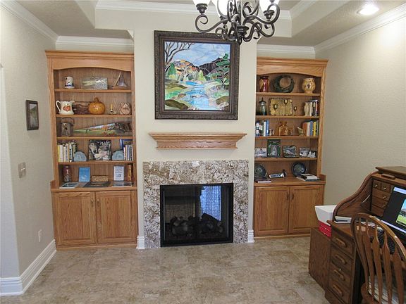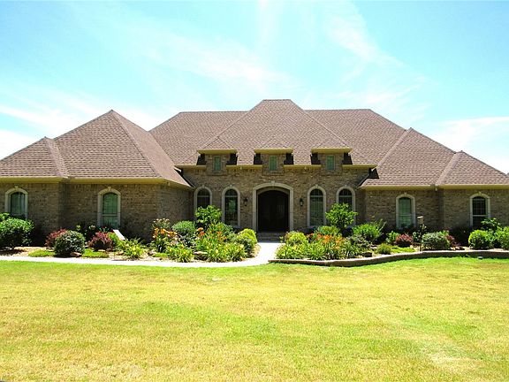 MAGNIFICENT FRENCH COUNTRY ESTATE • One story full brick home with a stream fed pond and stunning views of the Ozarks from every window. • Located in the city limits of Pea Ridge on the Big Sugar Golf Course with city water, sewer, natural gas for heating, and cable or fiber-optic. No POA fees. • It has a 1050 square foot over sized garage with 35’ depth that is designed for 2 vehicles and a boat. Acreage is completely fenced with black Ameristeel, complete with an automatic gate, two brick pillars and matching mailbox. • A double sided gas fireplace is shared with the Living Room and Great Room with built in red oak cabinets and shelves. • The house features porcelain tile floors throughout, and granite counter tops in the kitchen, bathrooms, and utility room. • The spacious master bedroom and Great Room have doors that leads out to the awesome tile floored veranda with cedar posts, a pine ceiling with 2 fans, and a doorway to the wired hot tub slab. BEAUTIFUL LANDSCAPING!