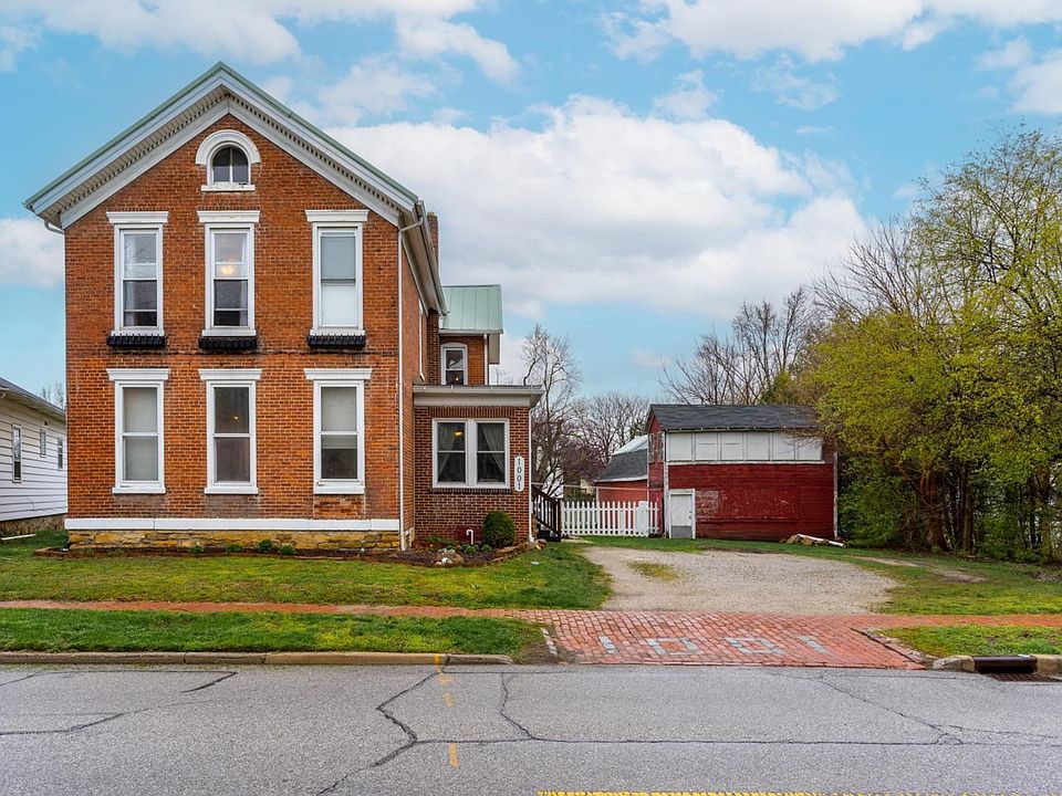 Amazing & Unique! The interior of the home has been completely remodeled from top to bottom. This unbelievable 4 Bedroom home with 3 full custom tiled baths is a Must-See! You enter into a stunning Slate Foyer that opens to a Lofted Dining Area overlooking the grand Great Room with Floor-to-Ceiling custom Brick Fireplace. The main level Den/Library with Coffered Ceiling and well crafted bookshelves is sure to impress, offering both beauty and functionality to your space. The freshly Remodeled Kitchen features a gorgeous new Island with stunning Quartz Countertops, new Stainless Steel Appliances, brand new light fixtures and updated flooring. Upstairs the Owner's Suite stuns with a grass cloth accent wall, walk in closet & French Doors that lead into your own private Bath with custom shower and Granite Countertops. Two modern staircases have real Wow Factor and add to the unique feel of the home. The Huge backyard with white picket fence, willow trees, grilling deck, and unique stone walking path make your outdoor space just as interesting and versatile as the indoors. The Barn/Outbuilding offers ample space to park cars, store toys and enjoy your hobbies. This Historic Home in the heart of Downtown New Haven has Wonderful New World Charm. You simply must see this one of a kind home for yourself!