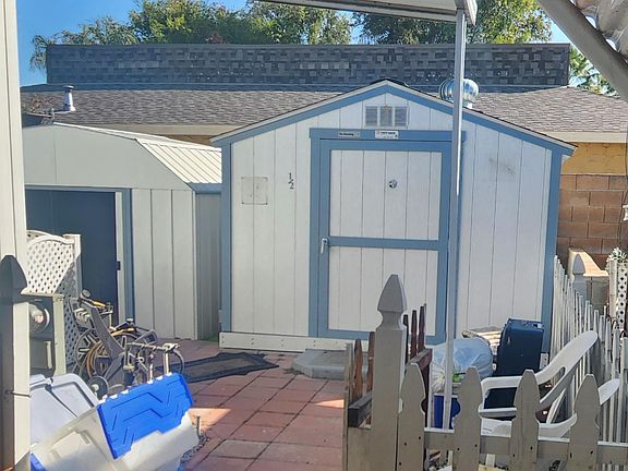 located in THE WOODS 55+ Senior Mobile Park - 1001 Sylmar Avenue #126. This Home is ABSOLUTELY THE MOST REASONABLY PRICED HOME IN CLOVIS IN EVERY WAY! Compare and Save. This spacious home provides 1348 sq.ft. living area with many extra amenities: inside laundry, plus includes the 100 sq.ft. air conditioned Tuff Shed Bonus Studio with windows and skylight, Beautiful Clubhouse, pool, spa, weight room, pool tables, and great community neighbors. Must see this one