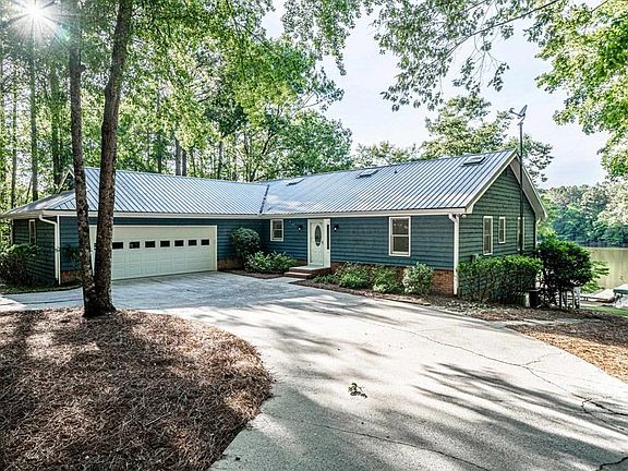 Peaceful and private describes this level lake lot with pretty view, beautiful trees, 10 ft. water at the max dock and 266 ft. of glorious Lake Oconee shoreline! Extremely well maintained lakefront home with, 4BR/3BA. A bright, open floor plan, vaulted great room with beamed ceiling and skylights, a fireplace and wood floors throughout. The great room opens to a lovely screened porch with open decks on either side. A large kitchen with loads of pretty cabinets opens to the great room. Split bedroom plan with lakeside master that opens to deck, and 2additional bedrooms, a bath plus a laundry room rounds out the main floor. Downstairs is an enormous, family room large enough for pool/ping pong, games tables and comfy sofas for TV or videos. You won't miss the ambiance with a stone fireplace and lake views galore. A 4th bedroom, bath, wonderful hobby room/shop and storage means room for everyone and everything. The family room opens to a large patio, easy to meander down the paved walk to the dock. Recently painted exterior and metal roof means maintenance is a breeze. Oversized2 car attached garage has plenty of room for the lake toys. Truly lake living at it's best...