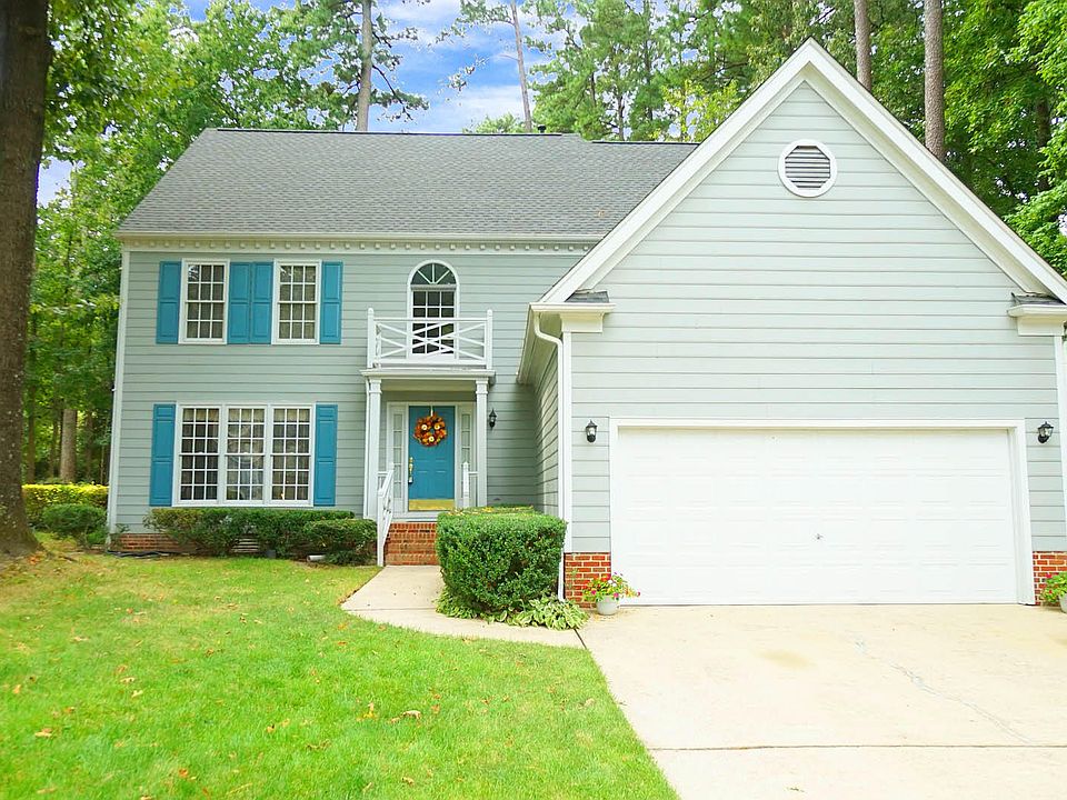 Meticulously maintained by the Original Owner, this multiple winner of community ''Yard of the Month'' showcases lush landscaping and sits on a private cul-de-sac lot in the highly desirable Planters Walk community—renowned for its walking trails, sidewalks, and unbeatable convenience to Raleigh. Neighborhood amenities include a pool, clubhouse, and multiple playgrounds. Recent updates include a New roof (2024), exterior paint (2020), and a New water heater (2020). Inside, you'll find four bedrooms along with formal dining and living rooms. The spacious eat-in kitchen features abundant cabinetry, granite countertops, a center island, and a built-in desk—all with views of the private, landscaped backyard. Kitchen opens to a large family room with a wood-burning fireplace creates a warm, inviting gathering space. The generous primary suite includes a walk-in closet and private bath with dual vanities, a soaking tub, and a walk-in shower. Three additional bedrooms provide plenty of room for family or guests, while the third-floor walk-up bonus with office space and storage offers incredible flexibility. Step out to the screened porch and enjoy your morning coffee overlooking the backyard oasis. A detached storage building and two-car garage complete this exceptional property. This charming home offers both comfort and convenience to I-540, HWY 64, RDU, shopping, and a wide variety of restaurants