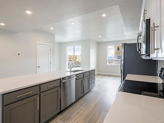 Brand new home in Rockwell Ranch! Higher end finishes including white and gray painted cabinets, quartz countertops, long island, LVP, stainless railings, double sinks and more. Be the first to move in! Amenities include clubhouse, pool, pickleball, basketball, soccer area, bocceball, playgrounds & pavilions (some amenities are under construction and some are coming soon). Located in Rockwell Ranch, close to the crossroads of I-15 and Pioneer Crossing. Within walking distance to the Frontrunner rail line. I prefer a 6 or 18 month term. Washer & dryer are installed.