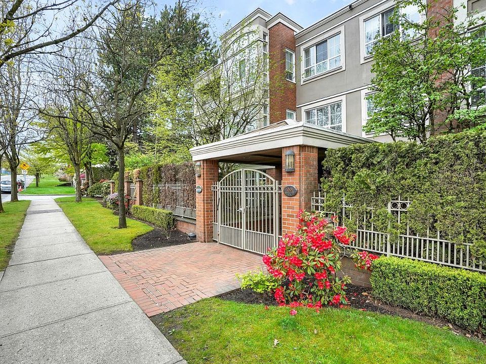 Enjoy a peaceful living environment in this grand sized one bedroom suite, overlooking a serene well manicured garden in ""Oak Gardens'. The generous rooms can easily accommodate house sized furnishings, inclusive of a flex space adjacent the kitchen for casual dining or office. Large bay windows in both living and bedroom areas provide ample natural light. This boutique sized building has a live in caretaker, additional guest suite and common meeting area with garden patio . Located in one of Vancouver's most attractive neighbourhoods close to most needed amenities, parks and transit lines. One parking and additional storage locker.