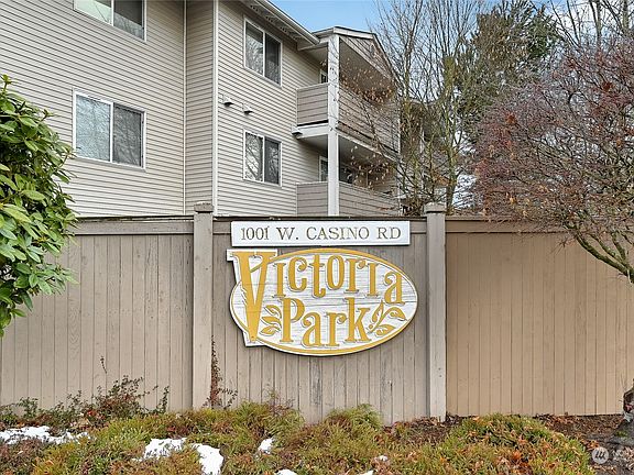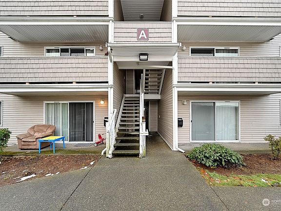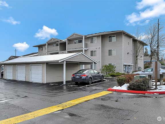 Welcome home to this spacious top floor condo w/ mountain views on a clear day. Generous sized 2 bedroom, Primary suite w/walk-in & Private Bath. Living Room with cozy Gas Fireplace. Kitchen is light and bright and offers Eating Bar & Pantry. All newer Stainless Steel appliances & Washer/Dryer are included. Enjoy your own private balcony to relax or entertain. You are given 2 assigned Parking spaces, low HOA dues, Athletic Court & Gated Security entry. Acclaimed Mukilteo School District. Arlo Security System. Close to the golf course, shopping, freeway and just 2 miles from Paine Field.