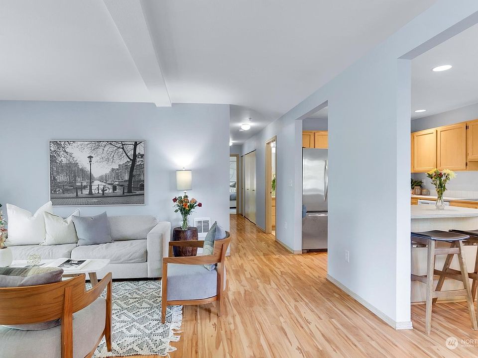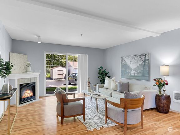 Discover this inviting condominium nestled on the first floor within a secure gated community! This updated unit features 3 bedrooms, 2 full bathrooms, and 1,168 sq ft of open-concept living, offering a spacious feel. Step into this move-in-ready haven, with new carpets, fresh paint, and more. The dining area seamlessly connects to a comfortable living space complete with a gas fireplace and a patio. Retreat to the primary bedroom with its own en-suite bathroom. Experience the convenience of a central location, with easy access to shopping, schools, dining, Boeing, I-5, and a golf course just a few blocks away. Benefit from two designated parking spaces. The HOA covers water, sewer, and garbage.