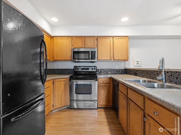 Welcome to this fantastic ground floor end unit condo in Everett! Recently renovated, the kitchen boasts a stylish backsplash. The open concept floor plan seamlessly connects the dining room and living room, highlighted by a cozy gas fireplace. With 2 spacious bedrooms and a large bathroom, comfort is assured. Step outside to your private patio, perfect for relaxing or entertaining. Benefit from the convenience of 2 parking spaces. Located in a convenient area, this condo welcomes you home!