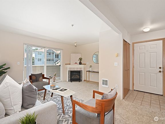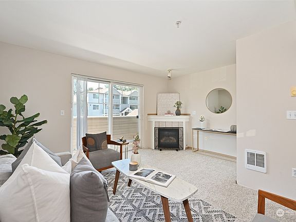 Great and affordable 2 bed 1 bath second floor condo with gated entry community! Updated, new carpet and paint, nicely staged to show good use of spaces, excellent location for commuting. 858 square feet of living space with tons of natural light and an outside patio just off of the Livingroom. Dining room along side kitchen with ample eating space, open concept is great for entertaining too! Centrally located with convenient access to shopping, schools, dining out, Boeing, I-5, and a golf course! Come see today!