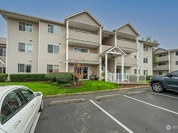 Super cute, affordable and updated 2 bed 1.75 bath 2nd floor condo unit with a gated entry community! New flooring looks fantastic! Nicely staged to show good use of spaces, excellent location for commuting. 921 square feet of living space with tons of natural light and an outside patio just off the living room. Dining room along side kitchen with ample eating space, open concept makes it great for entertaining or just enjoying your home! Centrally located with convenient access to shopping, schools, dining out, Boeing, I-5, and a golf course! Unit also comes with 2 assigned parking spaces! Come see today, what a value!
