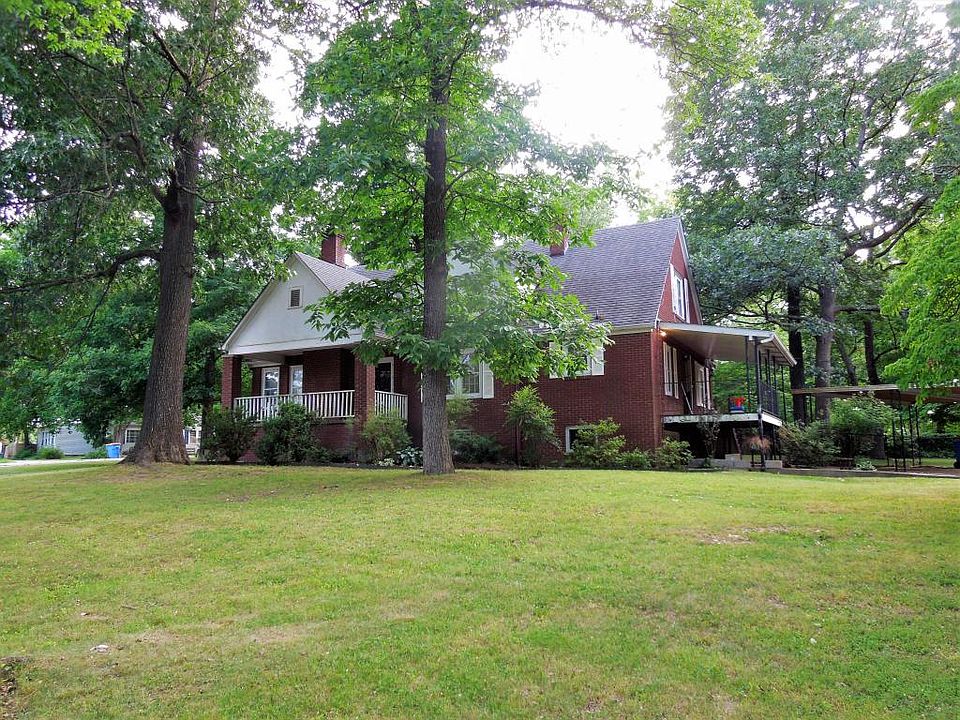 This sturdy brick classic will be a fabulous place for living and entertaining. Spacious historic home features a marvelous large yard with beautiful shade trees and sidewalks leading to the large covered front porch. Inside, you will find wood floors, lots of windows, gorgeous original pecan wood doors, fireplace, spacious rooms, and lots of character. Main floor has 2 bedrooms, large living room, large formal dining room, plus litchen and bath. Upstairs you will find 2 more large bedrooms, full bath and lots of storage. The basement has a den, and full bath, plus laundry area. Lots of space, lots of charm, and great location in a beautiful setting. Room sizes approx, sq ftg per assessor.