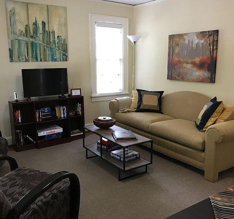 Sunny, large 2 bedroom, one bath with large living and dining room and fully equipped kitchen. , 900 sq. ft. Bedrooms have queen beds with fine bedding. Bath has soft towels and complimentary toiletries. Living area has dining table for four and large sitting area. Ample sunlit space for work and relaxing. Lovely outdoor patio area . Located in the heart of Glenwood South dining and music and museum district, within walking distance to NCSU and William Peace University. Restaurants, music, festivals, greenways all within walking distance. The furnishings are new and the apartment is tastefully decorated. An elegant retreat while in the busy city. Surrounded by gardens in the historic neighborhood of Cameron Park. Very safe area with a gated entrance. Rent includes all utilities