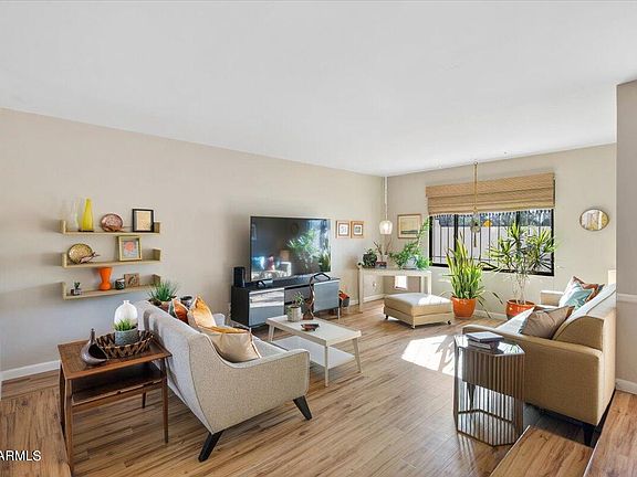 BEATIFULLY REMODELED 3 BEDROOM/2 BATH NORTH CENTRAL PATIO HOME. SELLER ADDED LUXURY VINYL PLANK(LVP) THROUGHOUT HOME(EXCEPT LAUNDRY ROOM) IN 2020, NEW AC IN 2019, ALL STAINLESS STEEL APPLIANCES INCLUDING FRIDGE AND QUARTZ COUNTERS IN 2020 AND TOTALLY REMODELED BOTH BATHROOMS IN 2020. WINDOWS ARE ALL DUAL PANED. THERE IS AN ENCLOSED 80' ARIZONA ROOM THAT IS NOT INCLUDED IN THE SQUARE FOOTAGE. HOA IS TAKING OUT THE EXISTING BACK WALL IN FEBRUARY AND REPLACING IT WITH A NEW ONE AND ALSO RAISING THE HEIGHT OF THE WALL. PRIVATE GATED FRONT COURTYARD. COMPLEX HAS COMMUNITY POOL AND SPA AS WELL AS A RECENTLY REMODELED CLUBHOUSE/REC ROOM.