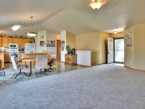 Welcome to this amazing ranch home in the desirable Colony Pointe neighborhood! This home has lovely curb appeal thanks to the beautiful landscaping and a covered front porch. The home invites you to an open living room with tons of natural light and vaulted ceilings. The spacious eat-in kitchen boasts a custom island with a wine rack, plenty of cabinet and counter space, and a pantry. The main floor is host to three large bedrooms including the master with a private bath. Downstairs, the full finished basement offers an expansive rec room, big bedroom, and a great space for a home theater. Relax or entertain in the private backyard with gorgeous gardens, mature landscaping and a convenient sprinkler system. Additionally, the home features a new roof, new exterior paint, new garbage disposal and new carpet on the main floor. This wonderful ranch home will not last long! This property could qualify for up to $5,000 in down payment assistance. Call for details.