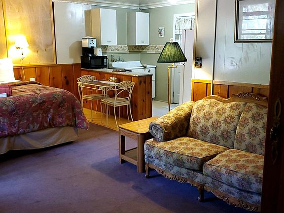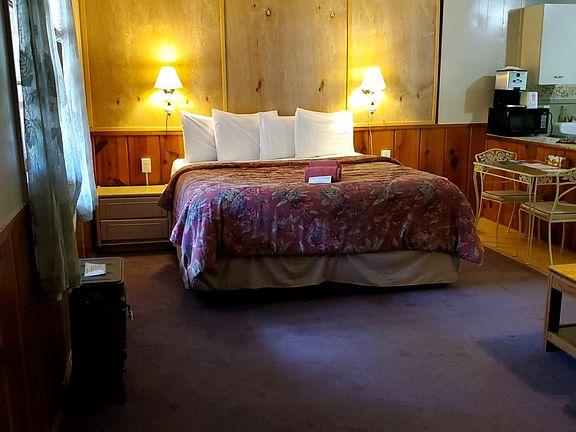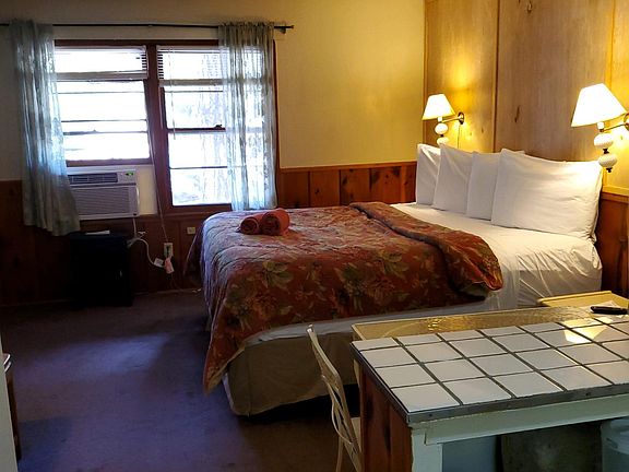 All utilities included, dogs allowed, all units located around grassy courtyard, close to downtown. Located just 1.5 miles from downtown and bordering the national forest. There are nice welcoming grassy outdoor public use areas available with charcoal grills, seating areas and 2 seasonal creeks that run through the property. All utilities included in rent cost. Dogs are okay with a one time fee of $150, no cats and no aggressive or vicious dogs. No smoking allowed inside. Please email or call Josh for questions. Short term leases are okay 1 month minimum. The studio is approximately 450 sqft with a full kitchen, 1 bathroom and fully furnished (King Bed). TV has been upgraded to LED flat screen as of October 2019. All utilities included in rent cost includes water, gas, power and wifi. Cable TV options available starting at $69.99 per month with no contract. Dogs are okay with a one time fee of $150, no cats and no aggressive or vicious dogs. No smoking allowed inside.
