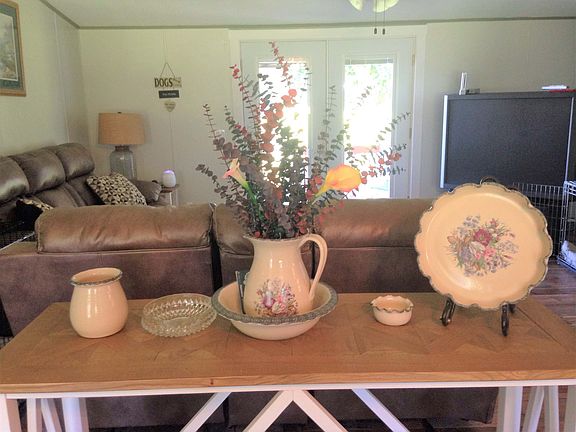 Well kept MH with many upgrades on 5 beautiful secluded acres. New hardwood floors, ceiling fans and two new out buildings added in 2014. New metal roof, hot water heater, toilets, custom tile shower in master bath, and back yard fence in 2015. New A/C unit and outside stairs in 2016. Enjoy the view across this expansive pasture land from the above ground pool.