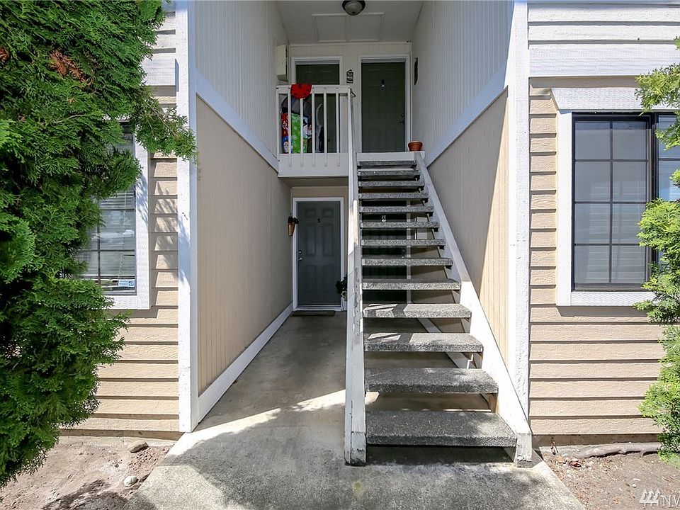 Beautiful, Well-maintain 2nd floor Condo! GREAT First home, affordable, Instant Equity! Large living room, fits oversized couches & more! Tall ceilings. Illuminating Fireplace insert. Security System installed. SUPER Affordable HOA $262 covers Garbage & Water, Owner only pays Sewer & Elec. End unit w Carport & Guest parking in back. Cute Patio w Storage. This one WILL go fast. TRULY A MUST SEE!! Convenient location Close to 512, I-5, 167, JBLM, Schools, Mall, Parks. Sellers are motivated!