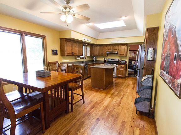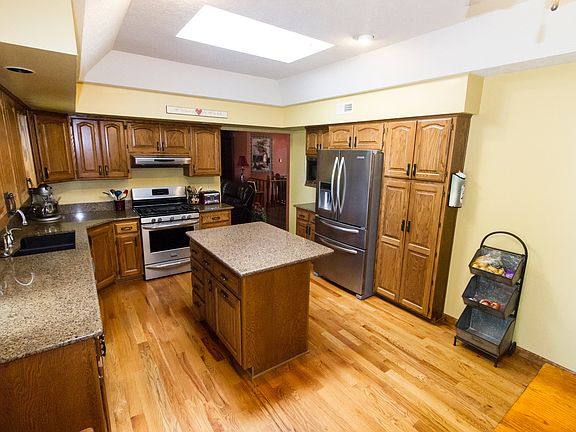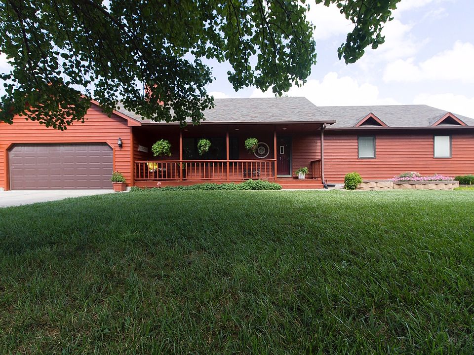**Contact Katrenia for a showing 785-364-6289** Transaction Agent April Preston 816-739-4419 Remarkable custom home quality built! Breathtaking views off the back deck to enjoy the wildlife overlooking a pond. Enjoy cooking for all your family and friends in the big country kitchen with granite counter tops, custom cabinets, hardwood floors and stainless steel appliances. This home boasts a new roof, gutters, skylights and fresh stain. Take a walk around the yard and find beautiful landscaping with flowers blooming to cut fresh for enjoyment. You will find fruit trees at the barn and a place to keep your horse or animals in the corral. Send the guys to the workshop and kids to the media room downstairs while you enjoy the relaxing Jacuzzi garden tub in the master bath. During the winter your family will curl up by the stone fireplace with hot cocoa and watch the snow fall through the gorgeous windows! This is truly a private setting with lots of enjoyment for the family. There are 2 non-conforming bedrooms not listed in details.