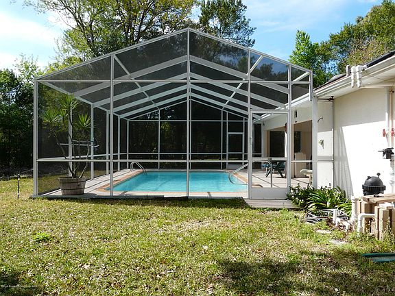 Beautiful Beck built home - 3/2/2 plus a large den/office. Large in-ground solar heated caged pool with oversized lanai. Pool area has a shower & access to the main bath. Double door entry into your living room. Triple sliders pocket to enter the large screened pool lanai. Master suite has pool access & space for a reading area, 2 walk-in closets. The master bath has a jetted tub/separate shower. The kitchen & dining overlook the pool area, home includes a subzero refrigerator. Beautiful hardwood floors, carpet and tile in the wet areas. Plenty of attic storage space with several access areas including pull down stairs in the garage. Outdoor space with a fire pit. No build behind and in front and there is a vacant lot on one side. Roof replaced in 2010. Survey available,