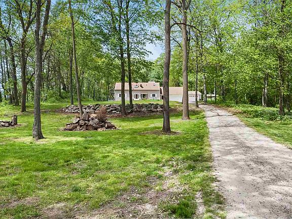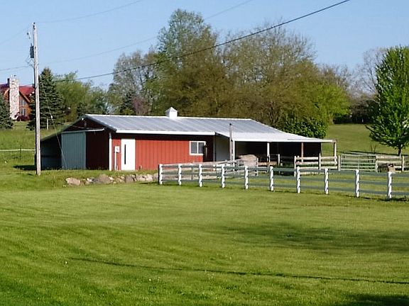 Fabulous property! Wooded and pastures for your horses or cattle. Over 12 scenic acres, with 4 bedroom, 3 full bath house. 30 x 40 barn with 3 stalls, electric and water. Attached 3 1/2 car garage, living room with door walls to the deck overlooking wooded acreage. Finished walkout basement with full kitchen, bath, bedroom and fireplace. Generator ready. Walk out to patio with a stunning boulder wall. Woodland wildflowers accent the property. Check out this mini-farm.