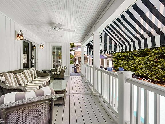 Sitting on an oversized 90' X 90' lot this beautiful home offers 6 bedrooms, 5.5 baths, spacious rooms, large eat-in kitchen with commercial DCS 6 burner range with a grill. In ground pool with a jacuzzi. Large detached 1 car garage. Designed by the late architect John Olivieri, the present owner completed the construction and completed it with outstanding amenities and state of the art finishes. Living space 6,000 square feet. Bay views from a third floor deck, the room can serve as a home office. Being sold fully furnished less a few personal items. The wall art, personal pictures, Knick Knacks, etc. are not part of the sale. The bikes in the garage are not part of the sale. Also, The outside porch and pool furniture are negotiable but not part of the sale of the property. Hardwood and ceramic tile floors. One of a kind in Stone Harbor. A must see!