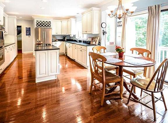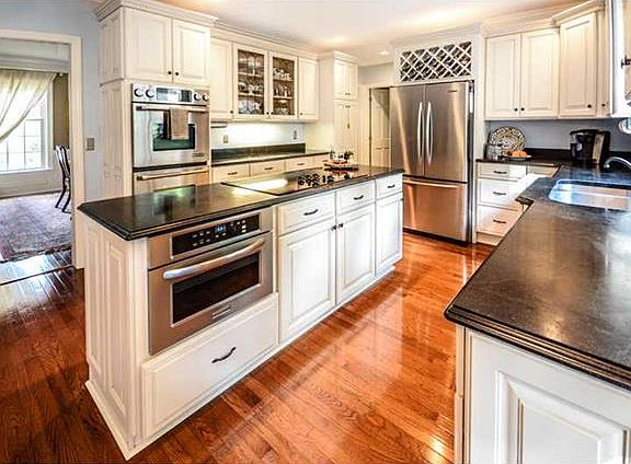 Brick home situated on usable lot w/ 4 bedrooms & 3 full baths. Large family room w/ fireplace & full wall of windows that keep it light & bright! Beautiful kitchen w/ soapstone counters, Jenn-air appliances and soft close cabinets. Gleaming hardwood floors thru out 1st floor with detailed crown molding thru out home. Master bedroom has vaulted ceiling with crown molding & walk in closet with skylight spa bath. Lower level finished with built-ins and walk-out to level yard. Oversized 3 car garage