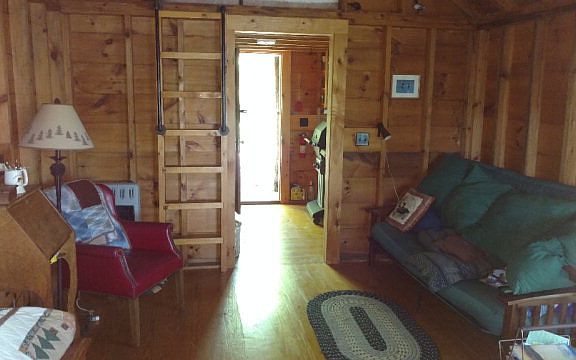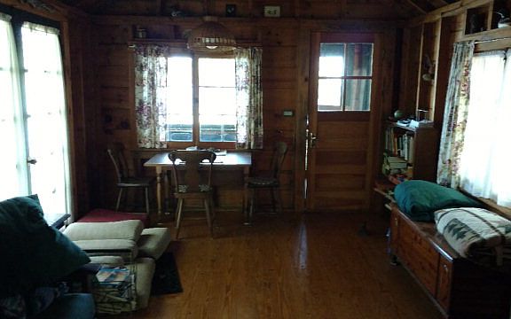 This lot might be the nicest location on the lake with 375' of sandy-bottom lake frontage and super views up the lake and across at all state land forest. The present water and electric are connected to Owl cabin (MLS 150464)and will be disconnected at time of purchase. New electric connection and new well will be needed. Value is mostly in the location and large lake frontage, but the cabin and bath house are in very good shape and fully furnished. Separate 10x10 bathhouse has composting toilet and graywater system only. If you are looking for a 3 season tiny home or want to winterize it, this might be just what you need. Owner financing will be considered for qualified buyers.