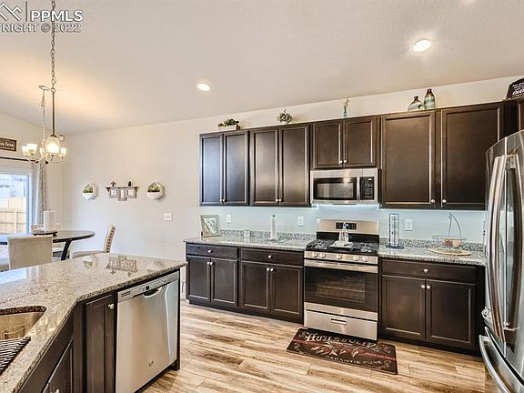 Must see, 3100 square foot 5 bedroom, 3 bath, ranch style home. Built in 2020, this home is open concept living at its finest! Enjoy hosting in your kitchen, complete with beautiful granite countertops, high end stainless steel appliances. Relax with your morning coffee at the coffee bar. In the evening, retreat to your primary bedroom, featuring a large walk-in shower with dual shower heads and massive walk in closet. 2 additional bedrooms on the main floor. Fully finished basement has a large area for entertaining. The basement features 2 additional master sized bedrooms and 1 full bath with a large double vanity. On a corner lot this south facing home gets lots of natural light and sun, making snow removal a simple task! Lot is maintenance free with attractive xeriscape landscaping and drip system. The fenced in backyard has a 10’ drive thru gate for RV or boat, did we mention NO HOA?!!! With a 3 car oversize garage, there’s room for so much more! This home has it all, nestled in desirable Paint Brush neighborhood, close to schools, shopping and outdoor activities!