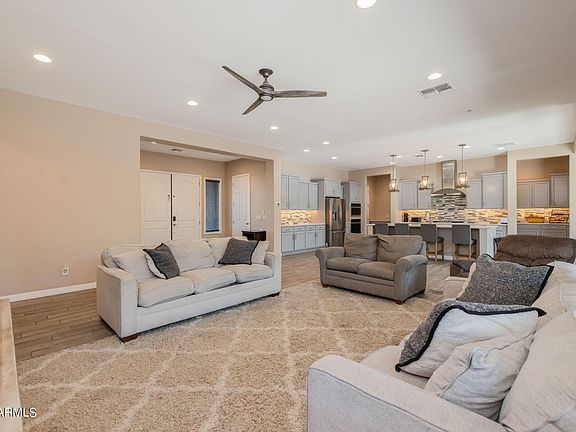 REDUCED AND PRICED TO SELL!!! Aptly named ''The Majestic,'' this home is designed for entertainment and boasts a charming courtyard and spacious portico patio, ideal for hosting gatherings. The abundant garage space ensures hassle-free parking. Inside, the impressive kitchen, morning kitchen, and pantry are perfectly equipped for grand events. On the first floor, a guest suite offers privacy to visitors, while upstairs, the primary suite, along with 3 additional en suite bedrooms, provides excellent separation. With a total of 6BD | 6.5 BA, including a private 1 BD / 1 BR casita with a separate entrance, this residence spans a generous 4747 square feet. Situated in the award-winning Eastmark Master Planned Community in Mesa, it epitomizes luxurious living. This one won't last long!