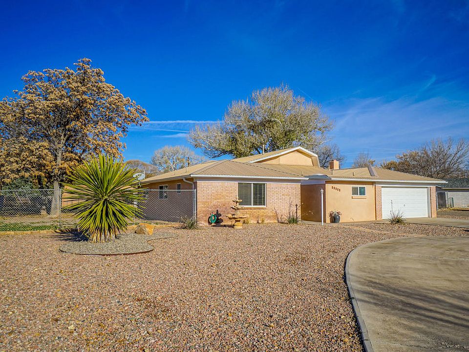 Great for large family & big gatherings! 4 Bed, 3 bath, Quiet Hidden N Valley location, move-in ready gem on 1/2 acre w double master bedrooms, 6 car garage inc large RV garage. Horses welcome! Trail to Rio Grande River from backyard. Massive renovated great room w vaulted ceilings, opens to kitchen & dining area, sliding glass doors to sunroom and super insulation in ceiling joists. Kitchen boasts plentiful counter space, 3 dining areas plus 2 countertop seating areas. Classic wood burning fireplace in dining room. Owner's suite is separate from secondary bedrooms, wheelchair accessible, roll in shower, wide doors, roll under vanity. No steps from garage & front door into house. New windows, new roof, refrigerated air! 5 minutes to Cottonwood Mall