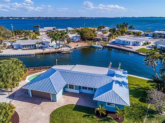 Tucked away in one of west Bradenton's premier boating communities, this home is light and bright with unbelievable views. The split floor plan offers 3 bedrooms, 3 bathrooms with 2 master en-suite full bathrooms, and a private office or den with a double sliding glass doors looking onto the wrap-around wood deck, swimming pool, & saltwater canal. Panoramic water views from the main living space delivers the ultimate coastal experience. All boat sizes are welcome with a 140 foot seawall and deep saltwater canal. Enjoy peek-a-boo views of the Palma Sola Bay. No expense was spared when this home was renovated! This unique home includes new top-of-the-line finishings, prime amenities, and a beautiful open floor plan. Some of the many updates include brand new ceramic wood plank tile, stainless steel appliances, quartz counters, solid wood cabinets, metal roof, brand new paved driveway, and a wrap around deck. See list of property features for all upgrades! This home is move-in-ready in the most sought after waterfront neighborhood, just minutes away from the beaches of Anna Maria Island, Robinson's Preserve & Palma Sola Bay. This is a must see to get the full experience!
