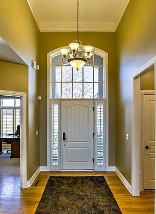 SPECTACULAR HOME YOU MUST SEE. You will not want to miss out on this 3 bedroom, 3 bath home located in Staley Farms. Fall in love with this reverse 1.5 story home with beautiful hardwood and carpeted floors. Enjoy the open kitchen with stainless steel appliances and breathtaking island. Master bedroom is complete with a tray ceiling and attached master bathroom with his and her sinks, walk-in shower, and whirlpool tub. Do not forget to check out the finished basement with wet bar and attached screened-in porch.