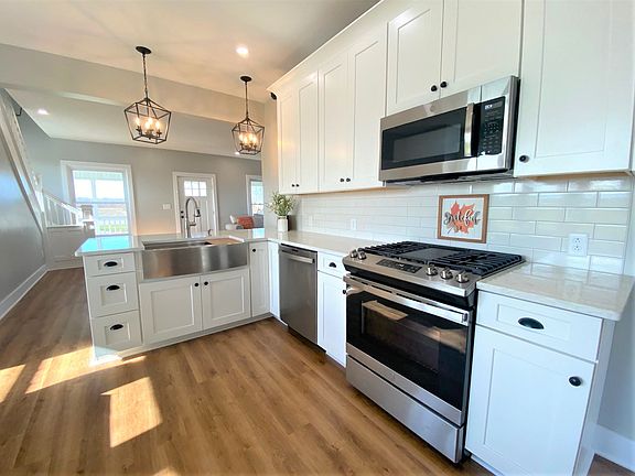 Welcome to your custom, luxurious home in the Country! This warm and inviting Open Concept home features gorgeous western facing covered porch, new luxury vinyl plank floors, a stunning remodeled kitchen with SS appliances including beverage chiller, quartz counters, stainless farm sink, two pantries & roll out shelves with bay window and eat in dining area, open to the great room. The main level master retreat features walk in closet, beautiful custom tiled tub, marble top double vanity and laundry room. The upper level has 3 beautiful bedrooms with walk in closets, 2nd laundry hook up and all new bathroom. Working from home has never been easier w/an office/landing on the second floor. Head down to the finished basement to entertain boasting daylight windows and half bath. The 2 car garage is oversized at 26X24 ft. The yard features a circular concrete patio with firepit and tons of space. All new roof, electrical, windows, siding, HVAC, flooring, lighting, well pump and more.