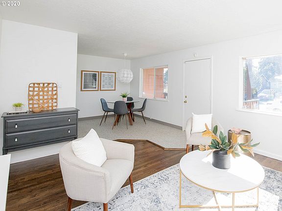 Charming mid-century modern! Move in ready with refinished hardwood floors, fresh paint, new flooring in kitchen and bath. Front porch leads to light filled living room and eat in kitchen. Deck overlooking fenced back yard -great for summer BBQ's and gardening. Attached garage for all your gear. Easy access to Max, shopping, I-205 and multiple parks!! [Home Energy Score = 2. HES Report at https://rpt.greenbuildingregistry.com/hes/OR10085721]