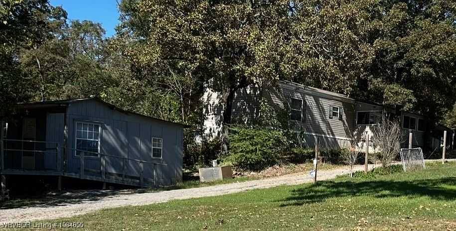 This property became available at just the right time. It comes with almost unlimited possibilities. As you drive up you will see just nestled in the trees a 1b/1b cabin with a small porch for relaxing. The cabin measures 20x22 with a a wood stove for heat and a built in (window) unit for cooling. There is a large bedroom area with an attached bathroom and stand up shower. The front room has a kitchen area with lots of cabinets, a sink and a small refrigerator. (Fridge) is negotiable. Just behind the cabin is an old well (depth/condition unknown) The single-wide is located on the same parcel (3 total parcels) It offers another 1120 sq ft with a framed in porch with windows galore. It could be easily made into living space and already has lots of cabinets. There are 3b/2 full baths. One is a master w/master bath. Double vanities and an oversized combo shower/tub. Just between the kitchen and master is the utility room with washer/dryer connections and a door to another space that was used for canning/jarring and hobbies. It offers a window unit as well for cooling. Just outside is a small enclosure previously used for freezer space. 2- (20x12) carports, a (20x24) metal shop and a (24x20) carport as well. Giving lots of vehicle protection. There is a (24x10) green house and a (8x6) metal storage building also located near the greenhouse.
