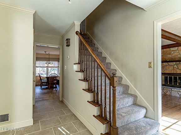 Lovingly cared for One owner 2 story with 4 beds, 2.5 baths, rear entry garage, finished basement, large rear yard with lots of parking space in desirable Plainview! Very stately appearance with large two story columns on covered front porch. Updated kitchen with granite tops, large matching granite top table that remains and updated cabinetry. Fresh just installed carpet in Formal living room, dining room, steps to second level, hallway and all bedrooms. Ceramic tile in foyer and kitchen just cleaned, sealed and regrouted. Cozy Family room with stone surround fireplace, exposed wood beamed ceiling, hardwood floors, bar area with sink, access door to rear of home/garage and half bath. Second level offers spacious primary bedroom with walk in closet , primary bath with updated