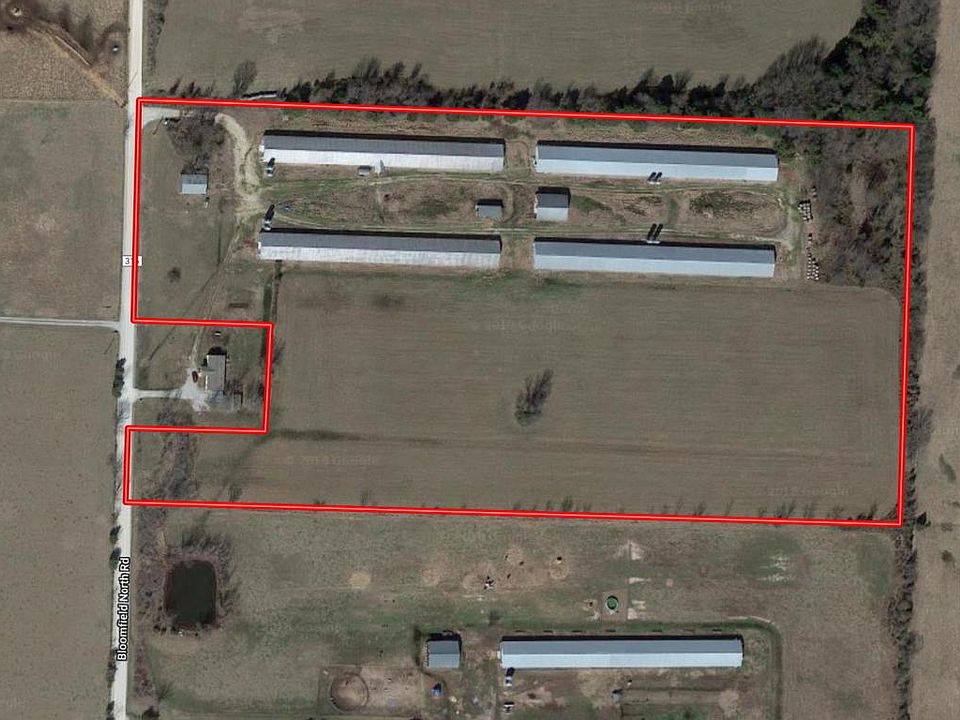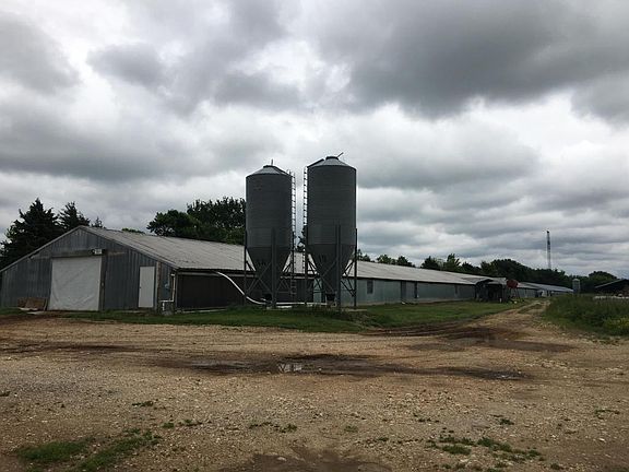 This is a good location for operating a business that needs open steel truss ceilings and open floors with lots of square footage. There are 64,000 square feet under roof with a standby generator, well water, public water, 30x30 shop, 40x60 concrete floor open-front shed, and a 5 acre cleared field. Easy ingress and egress for trucks and trailers. Level yard areas for east road maintenance. Less than a mile of gravel road after leaving pavement. Outside city limits.