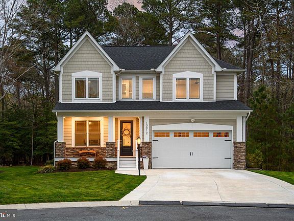 In the sought-after community of Glen Riddle, this is one for your short list be it for your year-round home, beach house or an investment (it’s a great golfers’ homebase). Here is a property with a perfect combination of luxury, comfort & convenience that’s ideally nestled on a lot that affords tranquil living among natural surroundings. Making this well-built 4 BD, 3.5 BA single-family home shine bright are the popular features & premiums that are spread throughout the 3,170 sq. ft. The curb appeal already reveals the beauty of this home! Centered around the charming front porch & the 2-car garage entrance featuring distinctive white posts and incredible rough-cut stone. Upon entry you see the fine craftsmanship with the attractive luxury vinyl plank (LVP) flooring. A few steps later you are in the grand open concept area that creates a warm & inviting space for both daily living and entertaining. Two prominent features here are the striking fireplace with its raised hearth & shiplap wall and the other is the large center island in the gourmet kitchen. The rest of the kitchen is a cook’s delight with its impressive appliances like the Bosch gas grill-top stove & oven. Adding to the kitchen’s stunning look are the striking vent hood and the exquisite tile backsplash with gorgeous Quartz counters! More desirables are the walk-in pantry, select glass cabinets, beverage cooler & eat-in area. The checklist items continue with a 2nd dining area, elegant living room tray ceiling and the abundant natural light. Through the kitchen is the powder room & a mudroom leading to the garage and at the front of the home is an office. A real treat is to step into the sunroom. Why is it so appealing: (1) you can enjoy it year-round thanks to a ductless heat & a/c system, (2) there’s a mighty gas fireplace with a prominent stone hearth & mantel, and (3) you are steps closer to the natural beauty outside easily seen through the wall of windows! Now, go outside to the expansive bi-level outdoor oasis where you can enjoy peaceful days & nights while watching an array of birds among other wildlife! It starts with a spacious deck then steps down onto a huge paver patio with an oversized half stone wall with an outdoor grill & large counter space and that’s just on one side; the other side has a gas firepit. Enjoy it all in this awesome space: unwind with your favorite beverage, dine al fresco, meditate, have your morning coffee, entertain, read a book, you name it. Back inside, the 2nd floor is where the 4 bedrooms are along with the utility room which has upgraded built-in shelves, cabinets and a sink. Two of the BDs are ensuite and all have closet organizers. The owners’ suite has 2 walk-in closets and everything in the bathroom is first-class: slate flooring, luxurious soaking tub, dual vanity with plenty of cabinets and a large walk-in shower. You will be delighted by its beauty when touring this home in person and as you discover other premiums & features not listed here. Glen Riddle is among the top communities in the area and only 4 miles to Ocean City & half that to West OC, 10 miles to Assateague, & 5 to historic downtown Berlin. This stellar community is close to so many shops, stores, family fun, places to dine & drink, the harbor and more! Amenities include: an outdoor community pool w/ hot tub, 2 premier championship golf courses, tennis courts, fitness center, kids’ playgrounds, marina with a boat ramp and on-site security. The onsite restaurant, Ruth’s Chris Steak House, does a wonderful job of telling in written form along with pictures & paintings about the equestrian history here which is not to be missed. In Person or By Video, set your appointment to see this one soon! Remember, Life is Not a Dress Rehearsal, Own at The Beach!