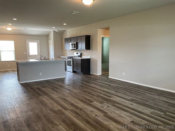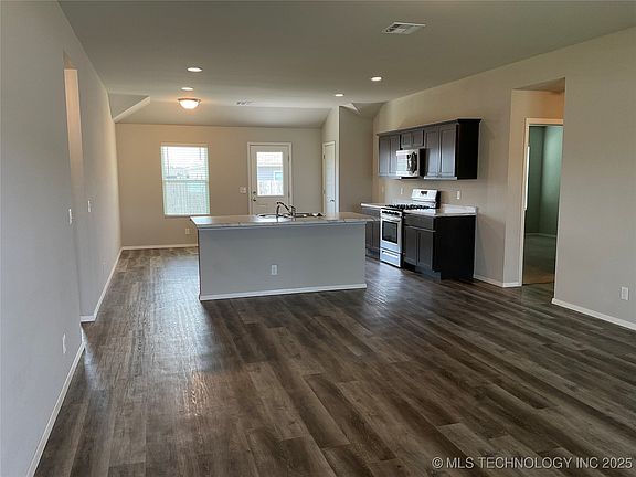 Owasso schools. 4/2/2. Open floor plan. Primary bedroom on opposite side of other bedrooms. Spacious living room flows into kitchen. Eat in Island kitchen has pantry, SS gas range/oven, SS microwave/venthood, and SS dishwasher/disposal. Primary bedroom has big walk in closet and private bathroom w/ walk in shower. Front bedroom has large window and could make a great office or playroom. Laundry room. 2 car garage. Large back patio. Privacy fenced backyard. Cats/small dogs allowed. Pet restrictions/deposit may apply. No smoking, No sublease, No waterbeds. Renters insurance required. Or you can enroll in the Bailey Foristell Resident Benefits Package (RBP) for $55/month. Please ask for more details.