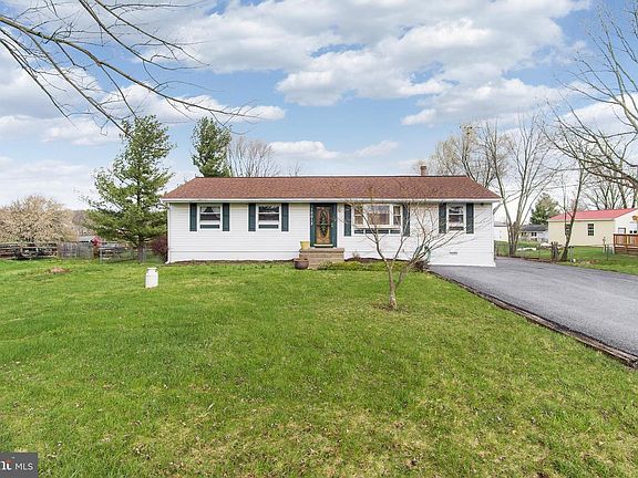 Charming single family home on .73 acres. Fenced rear yard with huge detached garage with heat, car lift and electric. Perfect for the mechanic. 4 bedrooms. two and a half baths. Eat in kitchen. Partially finished basement with wood stove, outside entrance and a half bath. HVAC is heat pump with propane back up. 4th bedroom and full bath on separate side of house could be in-law suite or potential rental. No HOA and not in the city limits. This house is in move in condition.